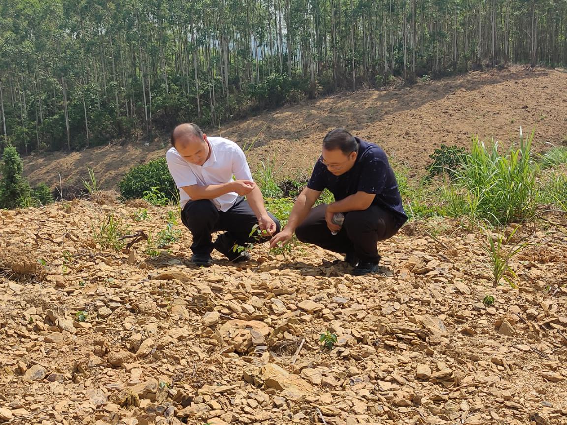 2021年7月28日,,,集团董事会秘书覃越崎到贵港市港南区港南区木梓镇大兴村、、木格镇黄石村视察拟收购林地。。。