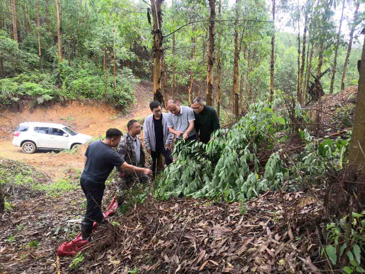 2022年5月24日上午,,集团副总司理唐治良向导相关部分认真人到四排中平林地、、、寨沙木岗林地审查桉树虫害情形及防治效果。。。当日下昼,,副总司理唐治良一行又到鹿晟公司统领的荔浦林场启明分场桥头瑶站、、、全福气场白姑冲等林地检查指导秃杉抚育、、、追肥事情