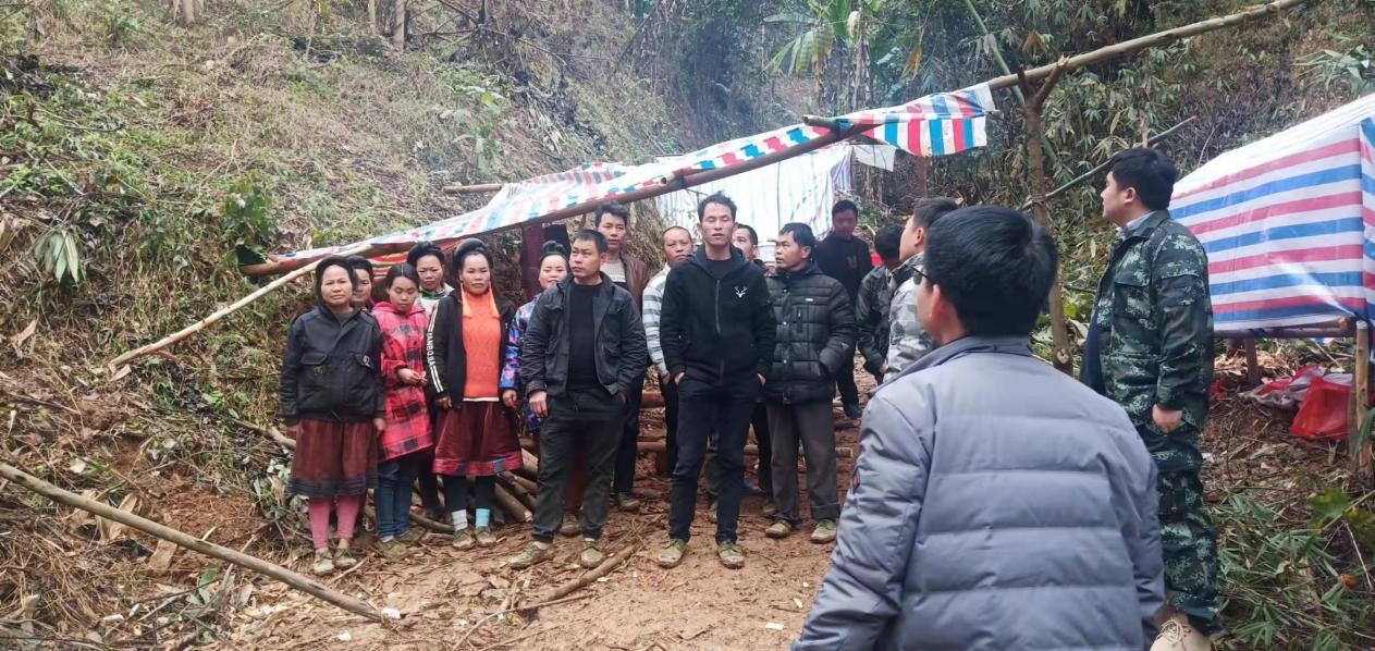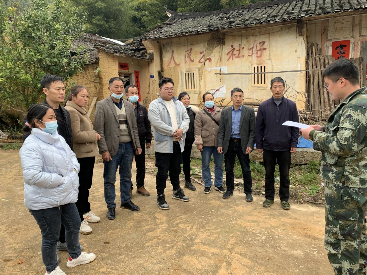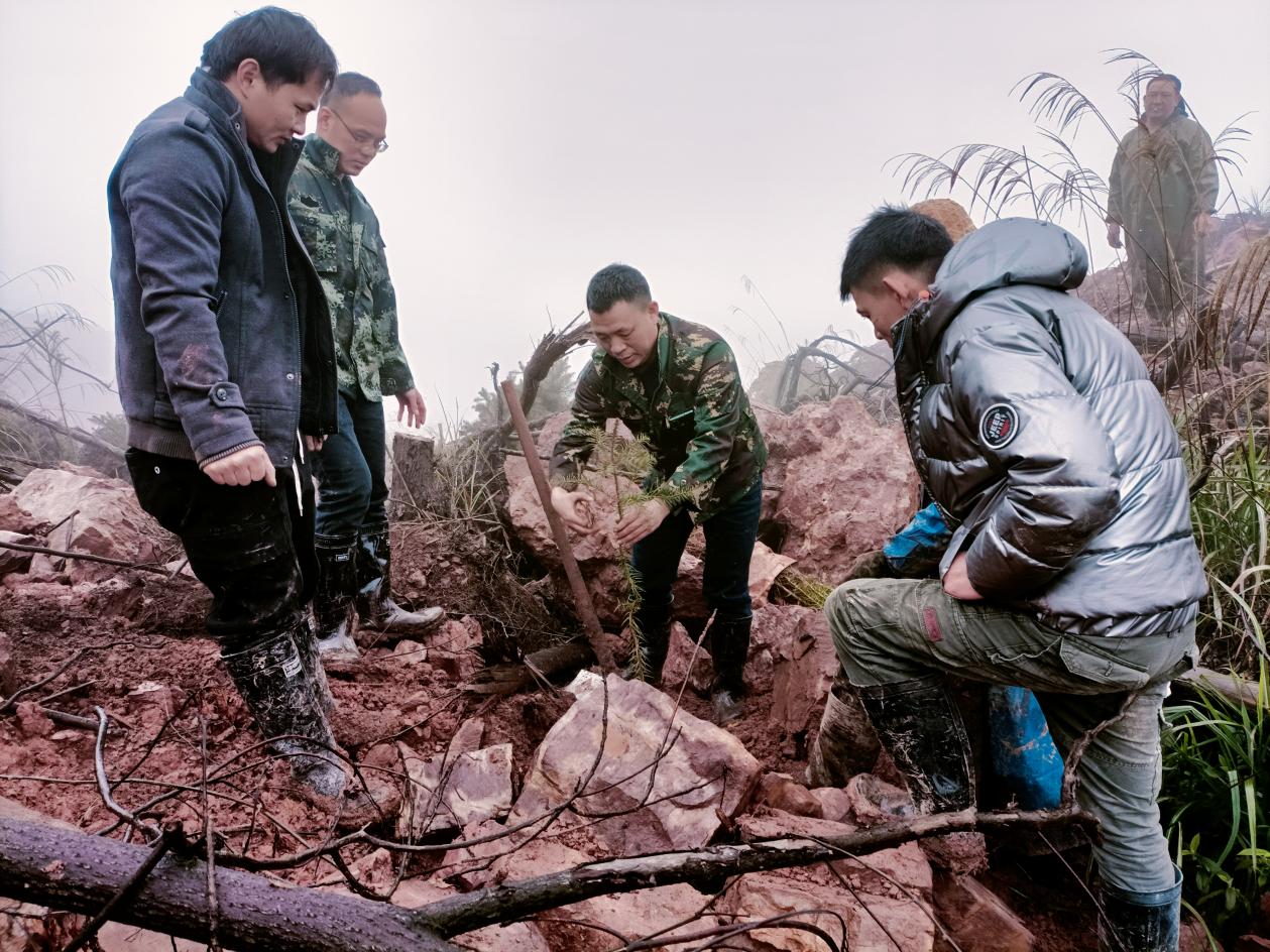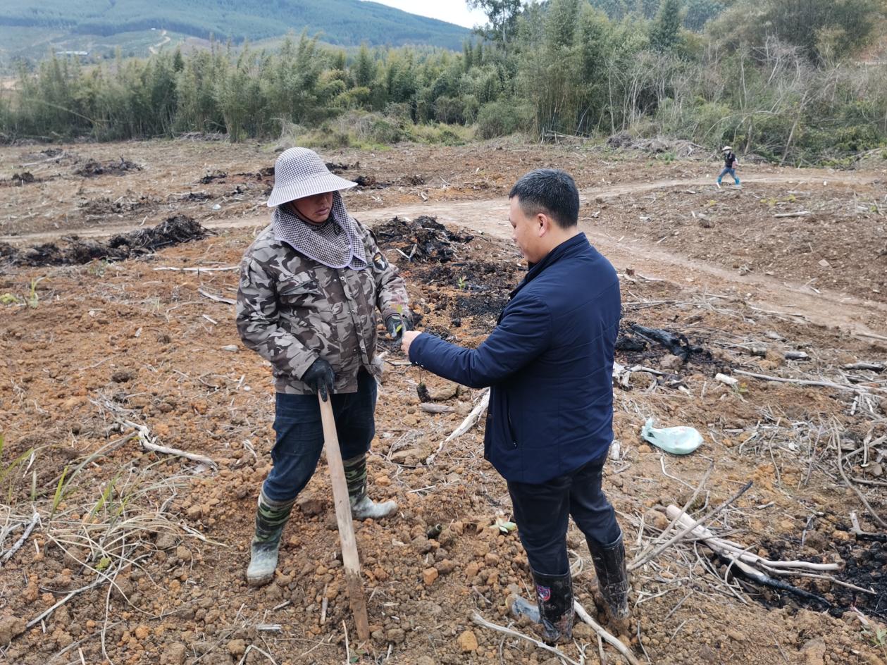 2022年2月21日,营林质量监理部司理梁攀带队到金秀三江乡长乐村刷新屯林地指导杉木莳植事情。。